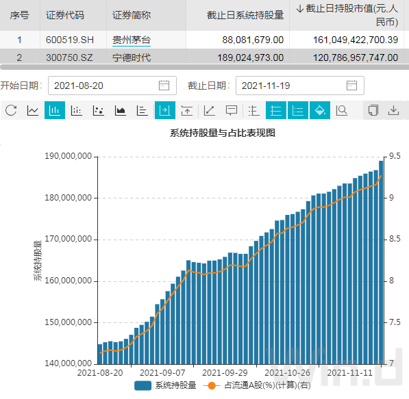 事实上,宁德时代股价的快速走高与北上资金的持续加仓密不可分。数据显示,截至11月19日,北上资金持有宁德时代1.89亿股,占自由流通A股比例超过15%,持仓市值超过1200亿元,且最近3个月持续买入约4400万股。