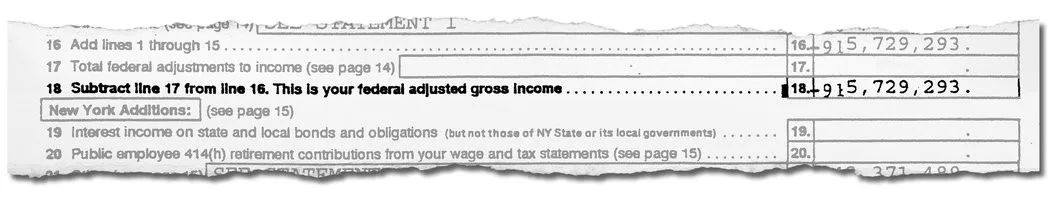 1995年的川普个税表报损了9.16亿美金,这意味着,在未来长达18年的时间内,川普每年赚5,000万美元,都不用缴任何联邦所得税。