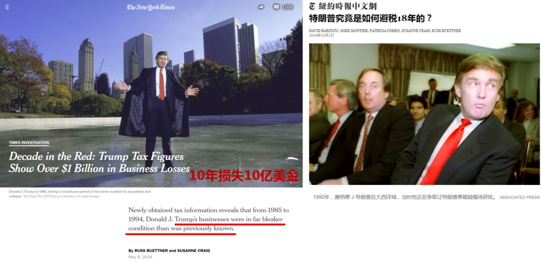 △图:今年5月纽约时报爆料特朗普亏损与避税