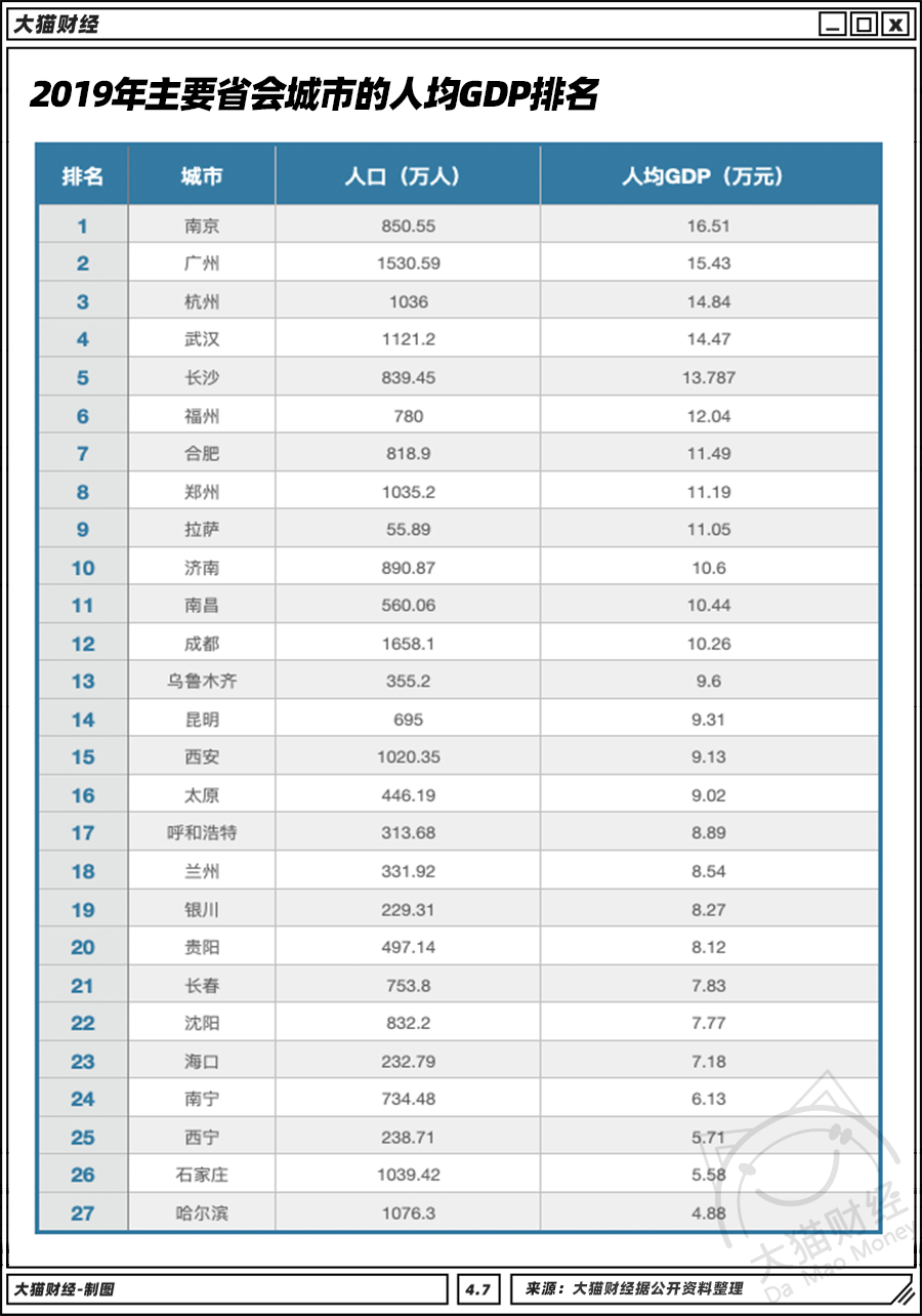 把2019年主要省会城市的人均GDP做个排名,会发现,前排基本是东南、华中地区的几个优等生争奇斗艳,紧接着就是中西部各自开花,而哈尔滨在这个榜单中垫底,距离东三省的另两个省会城市——沈阳、长春差距也有点大,大概是这两个城市的62%。