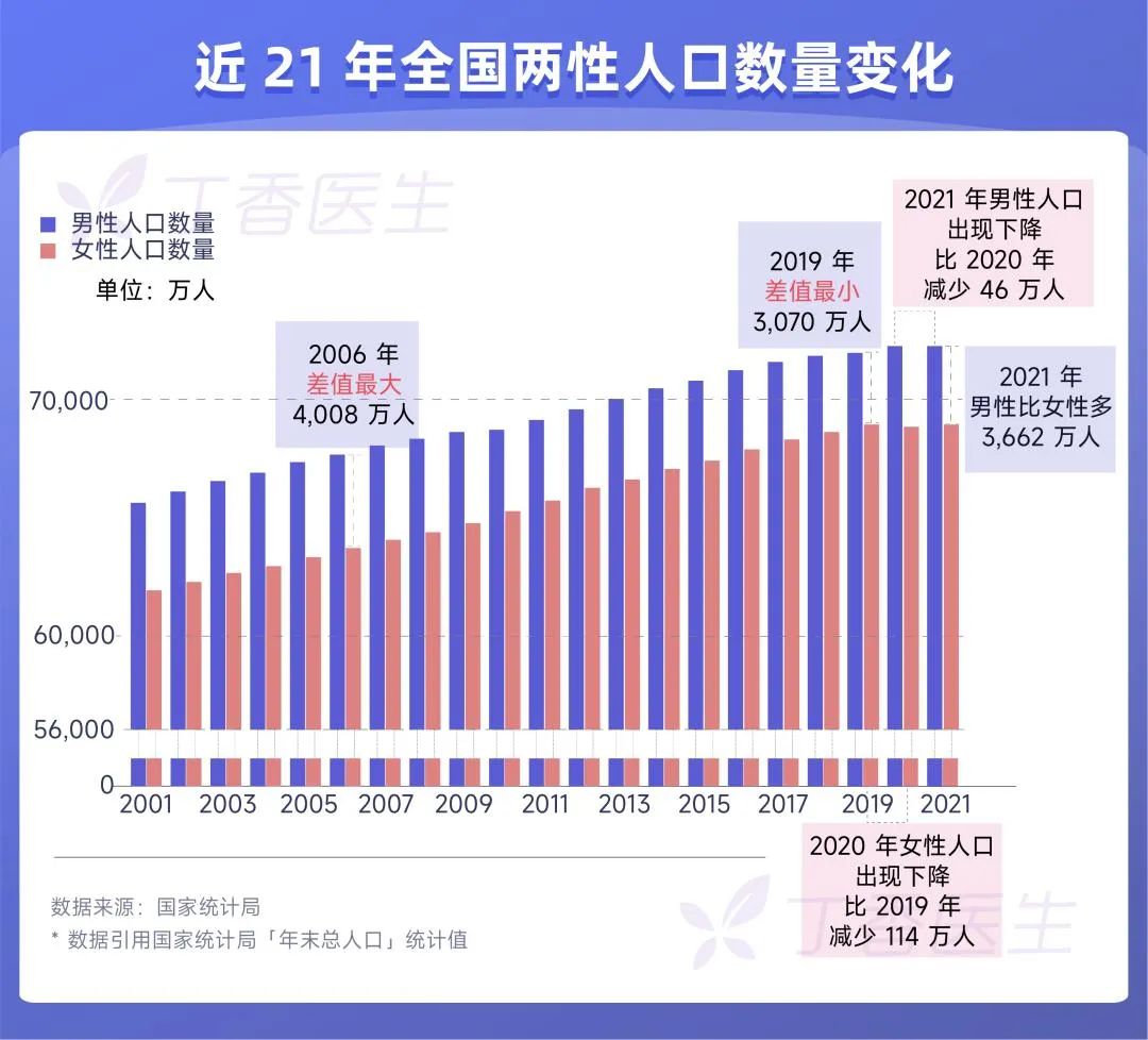 但从各种数据来看,真实性有待考证。截至3月9日印度人口时钟数据显示,印度总人口达到14.113亿,而中国总人口是14.126亿。尽管印度并没有官方数据公布,但仅仅一百多万人的差距,2022超过中国,似乎真的不在话下。“全球第一人口大国”的称号,在今年,势必会落到印度头上。而最近公布的中国人口数据,又出现了四个历史性变化:在2月底公布的中国统计公报中,14.1亿的总人口中,男性7.23亿,女性6.89亿,男性比女性多出3362万人。但男性人口比2020年下降了46万人,这是近40年来首次出现。与之相反,女性人口则相比2020年增加了94万人。