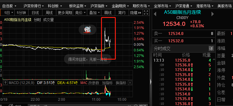 首先来看A50的表现,该指数是率先表现的中国资产。今天中午,富时中国A50指数期货直线拉升,一度涨超2%。
