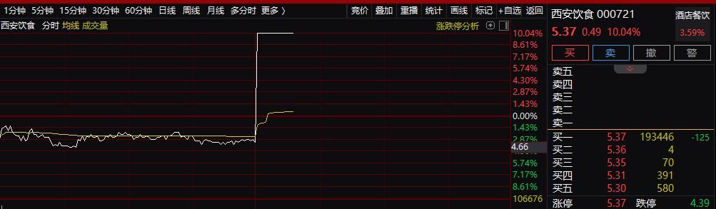 A股市场午后集体拉升。旅游ETF直接拉升超过3%,众信旅游午后开盘秒板,西域旅游、君亭酒店、华天酒店、天目湖等纷纷大幅冲高。消费、航空、餐饮等板块快速走高,西安饮食涨停。